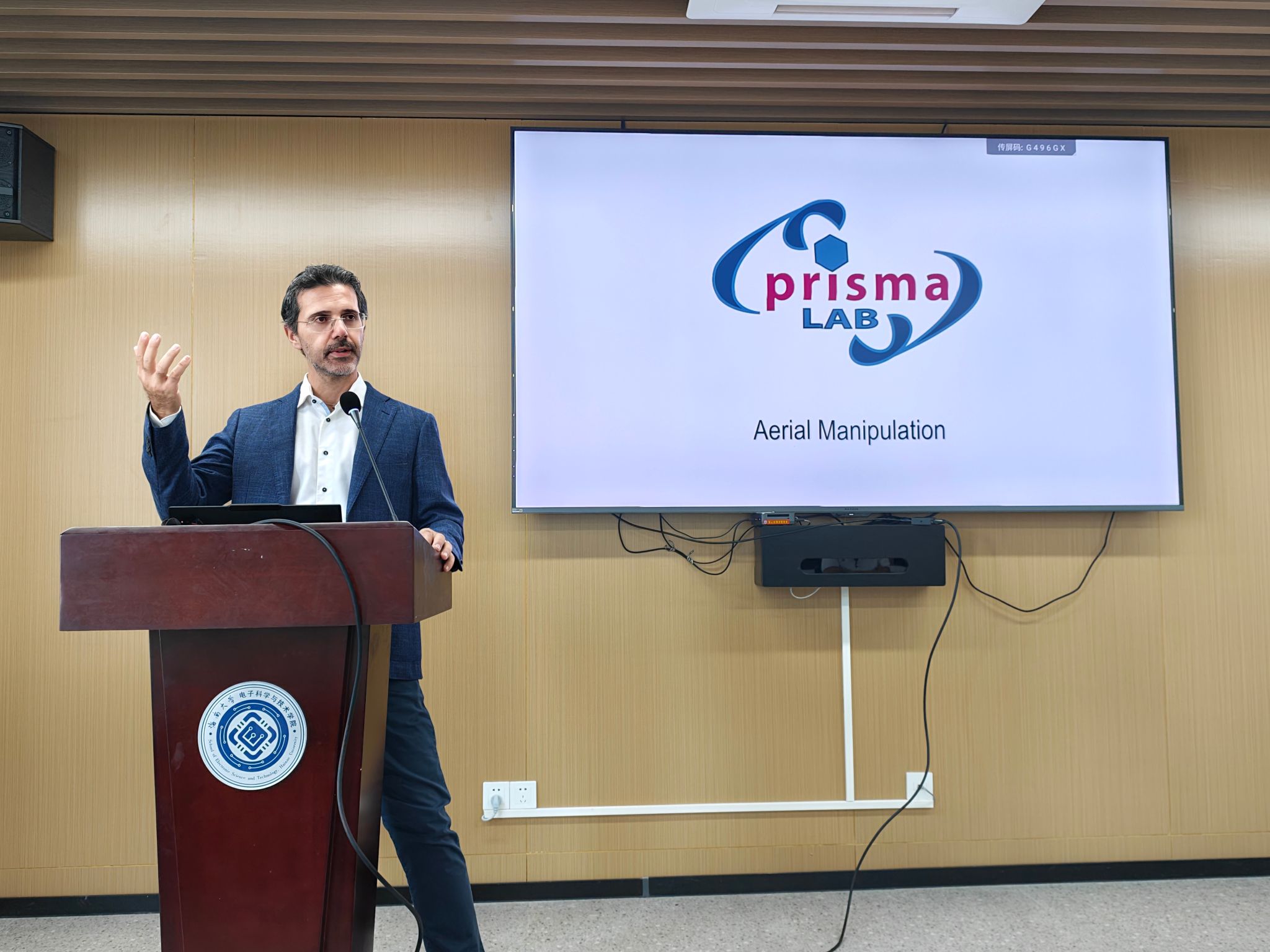 讲座中,Lippiello 教授围绕高空作业智能机器人系统的创新发展展开系统讲解,重点分析了传统高空作业在灵巧操作、环境适应性和续航能力方面面临的瓶颈,并介绍了团队研发的一系列具备应用潜力的智能机器人平台。