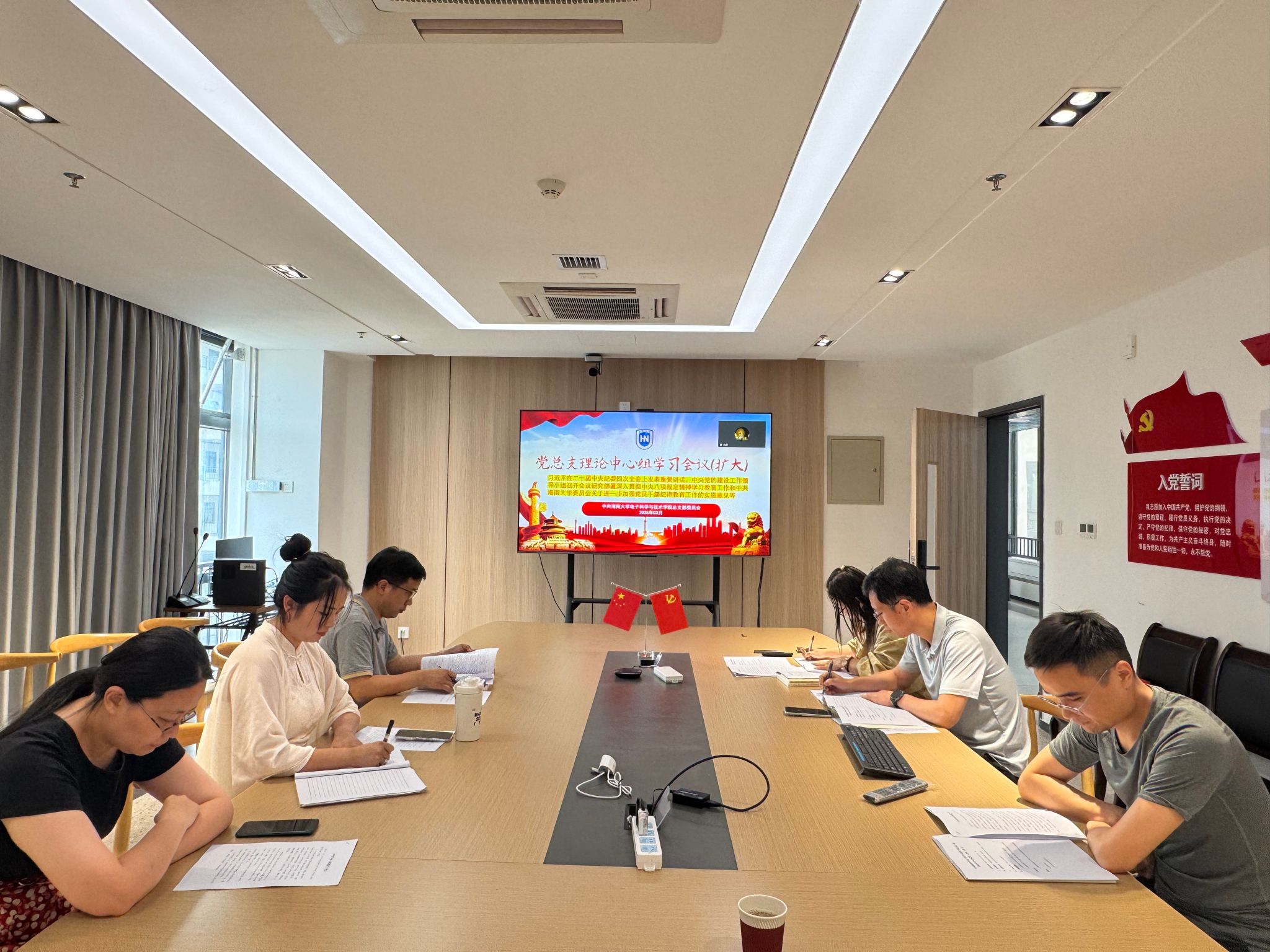 学院党政领导班子成员、全体党员线上线下同步参加会议。