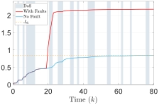 1)在故障检测观测器的设计中引入了动态事件触发机制,并证明了在易受DoS攻击的网络中保护通信资源的有效性。与传统的事件触发机制相比,论文中使用的动态方法不仅能确保系统的正常性能,还能显著提高通信资源的保护能力。